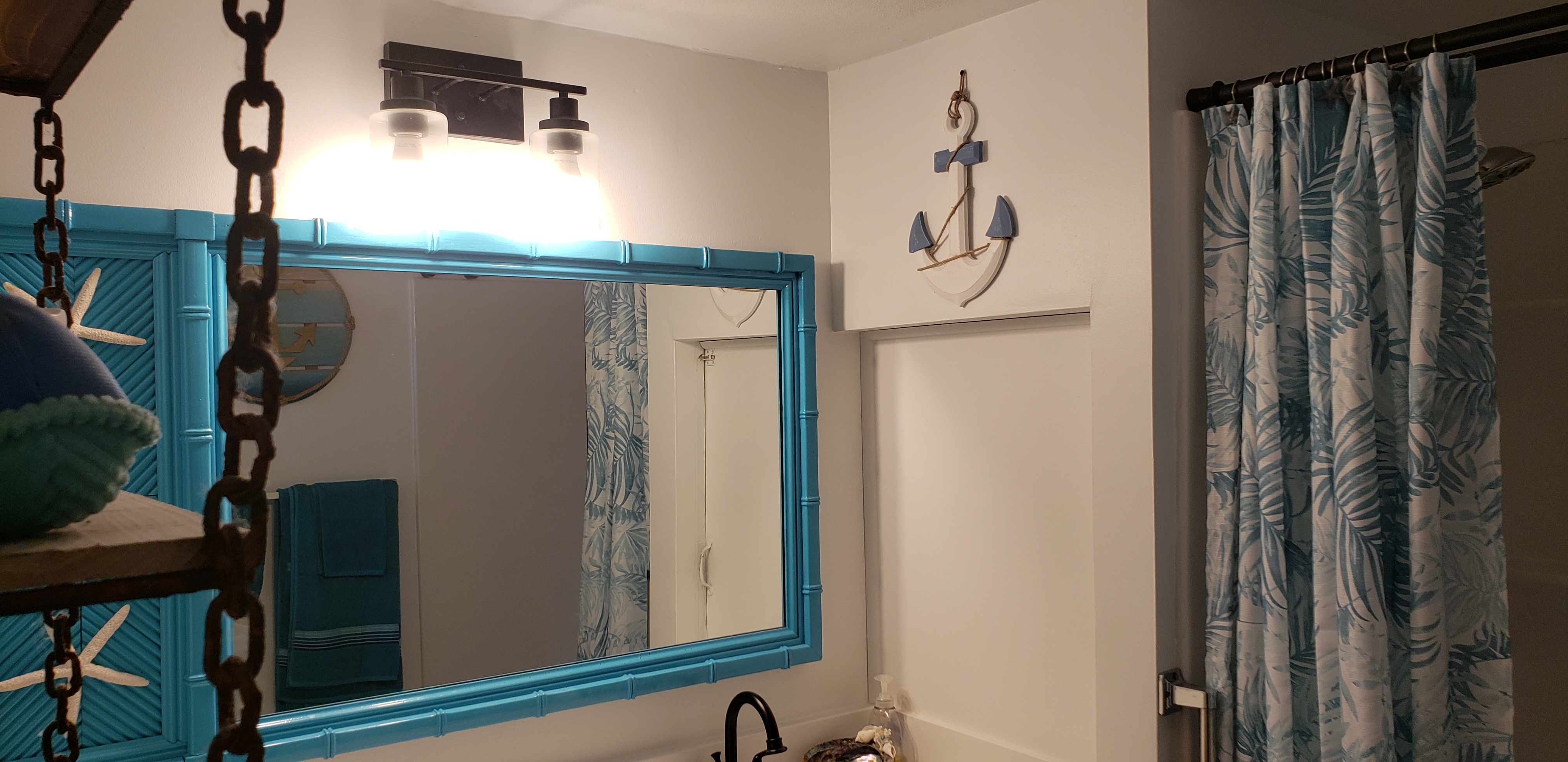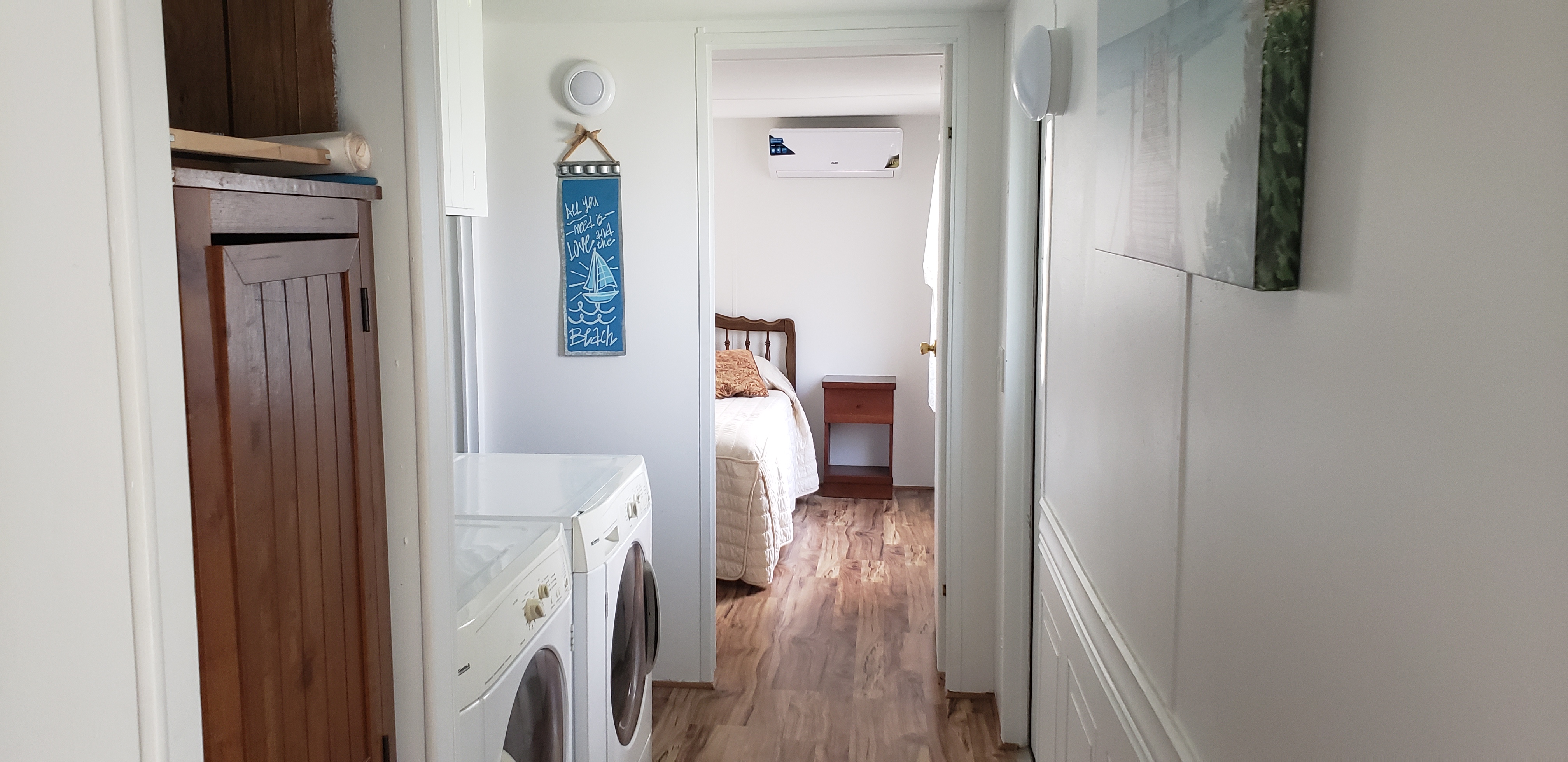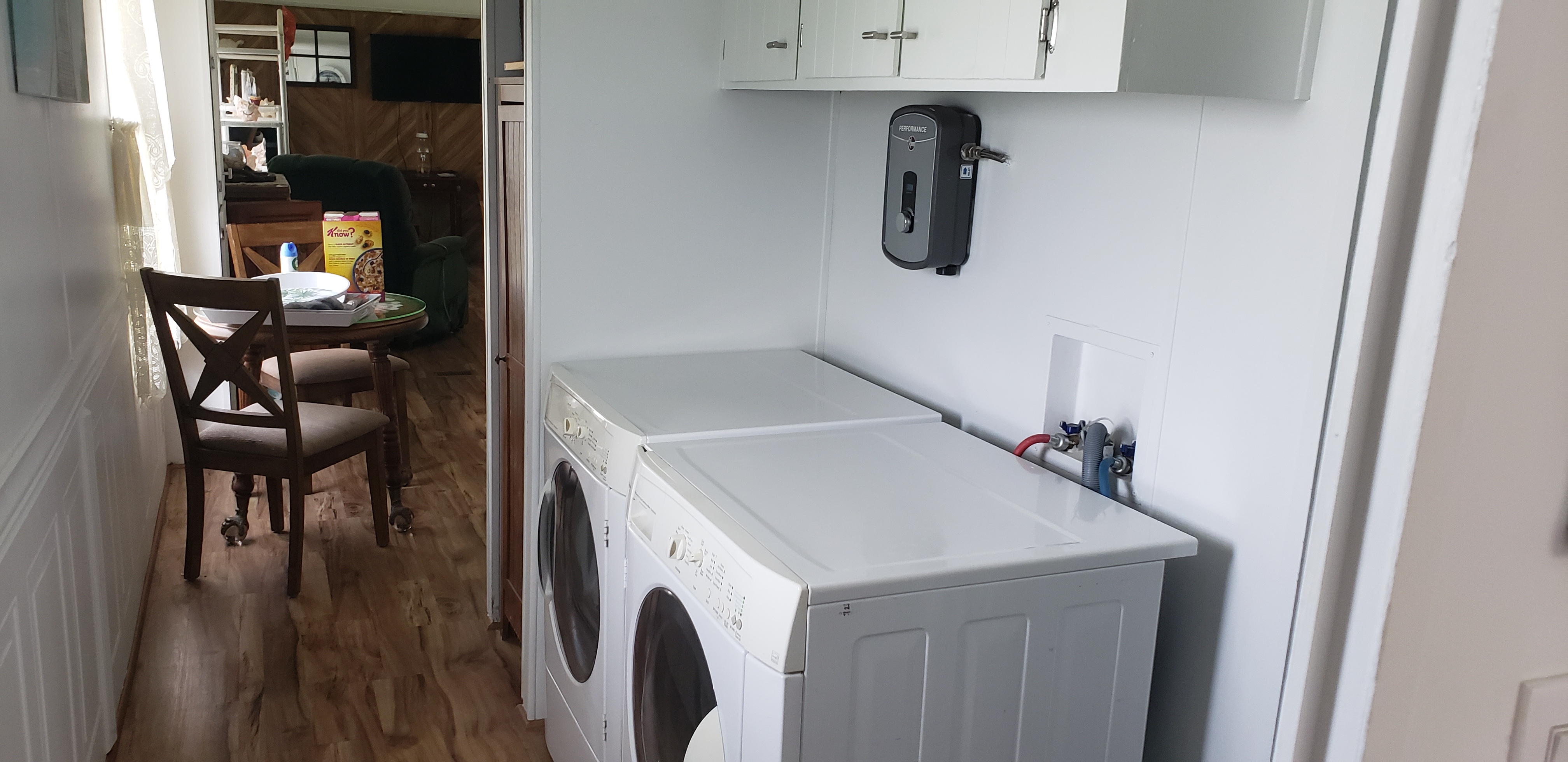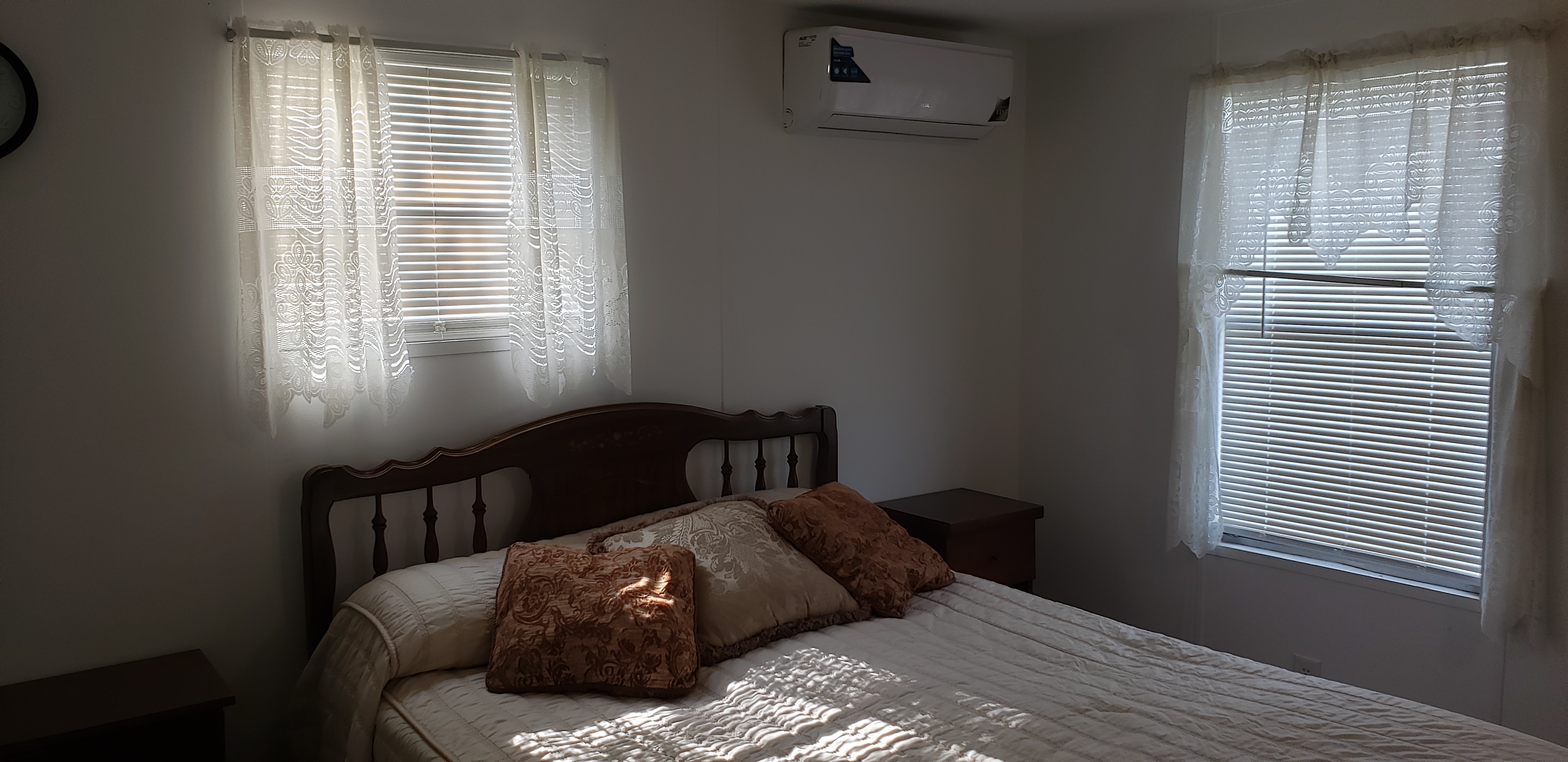 Coastal theme for 55+ living. Relax in living room with large tv and double recliner couch and additional electric lift recliner. Bar between living and kitchen seats 2. All electric kitchen has lots of cabinet space and small kitchen table. Laundry room has washer & dryer. Split bedrooms with queen bed, one in front, the other in back. Even has storage building and 2 car carport with room for BBQ and porch sitting. Additional guest charge of $50. per night.